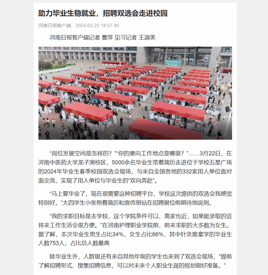 学习强国、河南日报等丨leyu·乐鱼(中国)体育官方网站成功举办2024年毕业生春季校园双选会