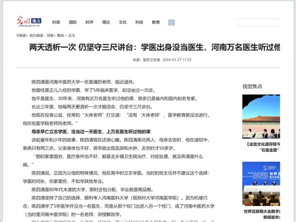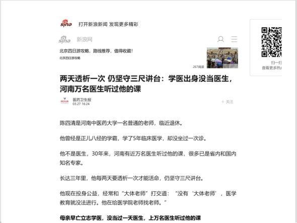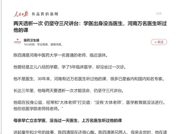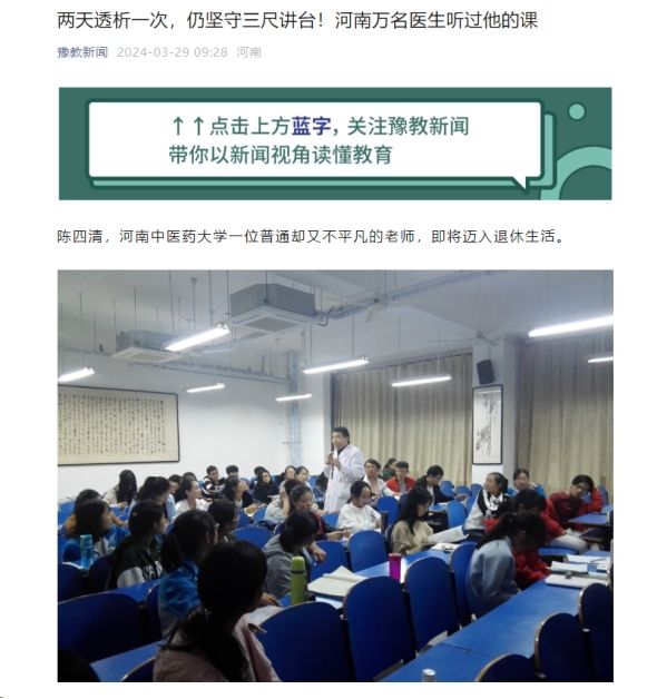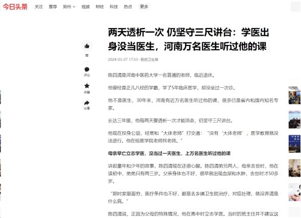 医药卫生报等丨两天透析一次 仍坚守三尺讲台:学医出身没当医生,河南万名医生听过他的课