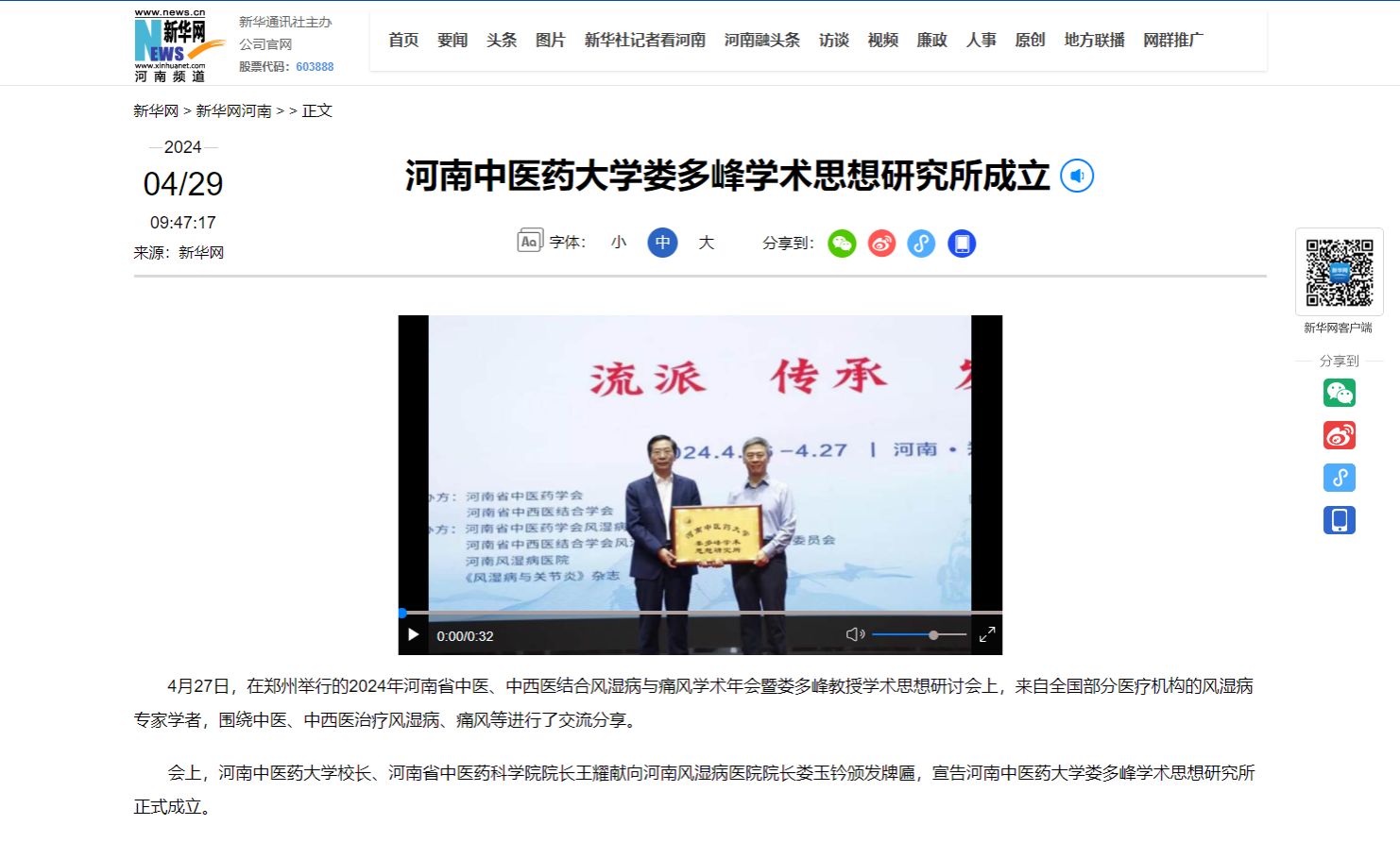 据介绍,娄多峰是我国著名中医风湿病学大师,原河南中医学院教授、主任医师,河南娄氏风湿病学术流派第三代代表性传承人,享受国务院政府特殊津贴,是河南风湿病医院的创始人、名誉院长。娄多峰从事中医骨伤与风湿病学教育教学、临床、科研70余年,培养了大批中医骨伤、风湿病优秀人才;出版了《痹证治验》等一系列风湿病学著作;形成了独具特色的“虚邪瘀”中医风湿病学科理论体系,在我国中医风湿病学领域和国内外广大风湿病患者中享有盛誉。2021年,娄多峰因病去世。