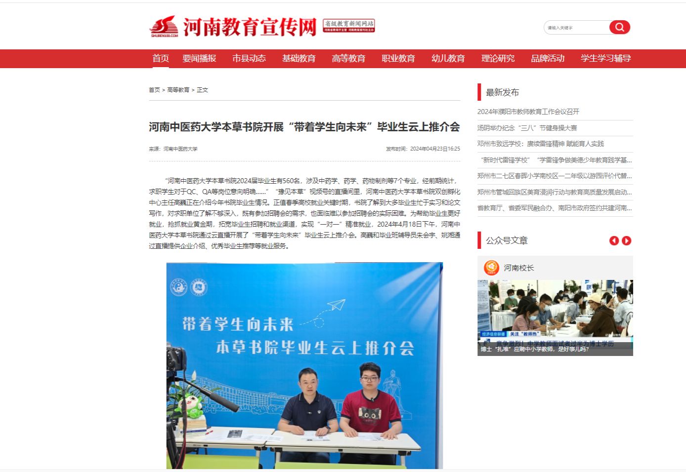 河南教育宣传网丨leyu·乐鱼(中国)体育官方网站本草书院开展“带着学生向未来”毕业生云上推介会