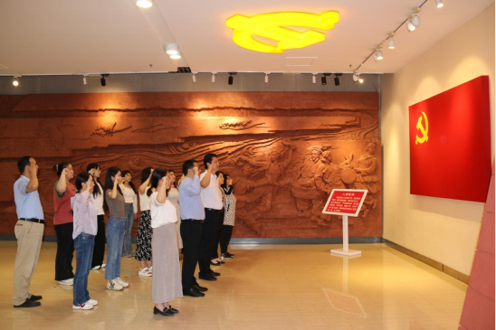 随后,大家来到位于兰考县展览馆内的焦裕禄同志纪念馆学习参观。在讲解员的讲解和带领下,大家一齐重温焦裕禄同志的感人事迹,用心感悟焦裕禄在参加革命、带领兰考人民防沙治沙过程中体现出的亲民爱民、艰苦奋斗的精神。一幅幅弥足珍贵的图片,一个个感人至深的故事,生动展现了焦裕禄同志当年艰苦的成长过程和革命经历和当年焦裕禄带领兰考人民战天斗地治理“三害”、访贫问苦、心系群众的场景。这种“敢教日月换新天”的拼搏进取精神深深感染了在场的每一个人。参观结束,大家在庄严肃穆的党旗前,举起右手重温入党誓词,全体师生党员纷纷表示要把焦裕禄精神作为一面镜子,努力向焦裕禄同志看齐,认真学习焦裕禄同志的崇高精神,不断提高党性修养,转变工作作风,努力做焦裕禄式的好党员、好教师。