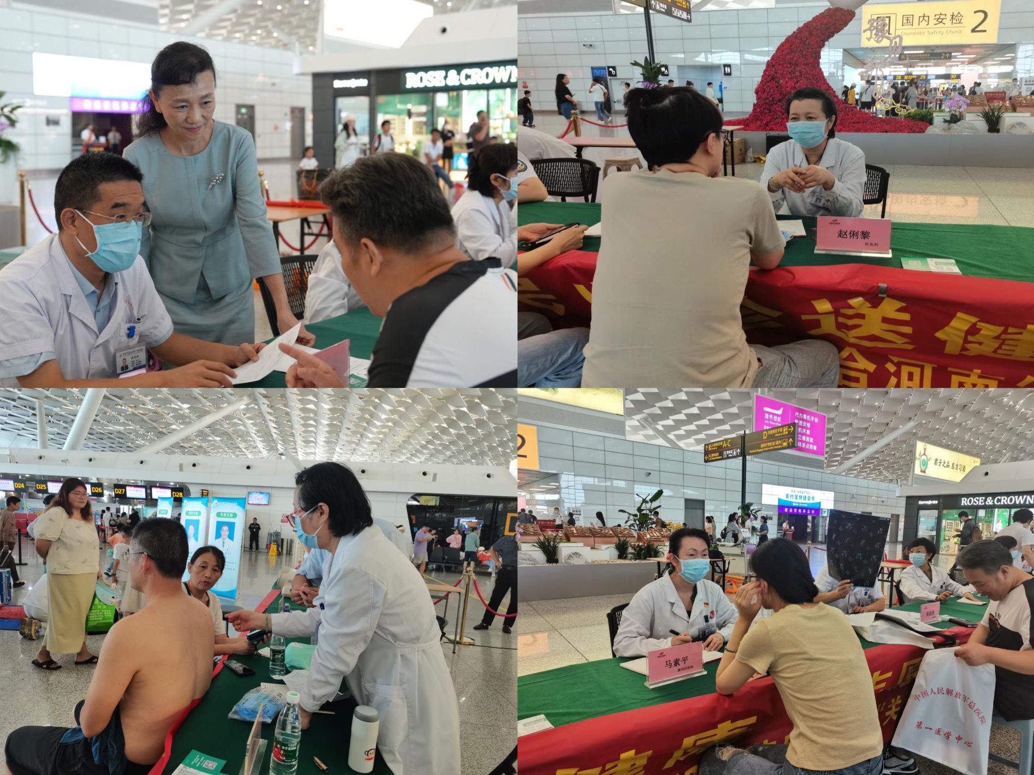 本网讯(文图/冯超)关爱旅客身心 健康伴您出行。2023年8月18日,在第六个“中国医师节”到来之际,一附院“延泰先锋”志愿服务队应河南省机场集团邀请,赴郑州新郑国际机场开展健康义诊活动,以志愿服务践行医者初心,以为民送健康的方式庆祝属于自己的节日。医院党委书记翟剑波、党委副书记张婉红,河南省机场集团卫生服务中心党支部书记汤秀敏、主任王爱兵等领导出席。