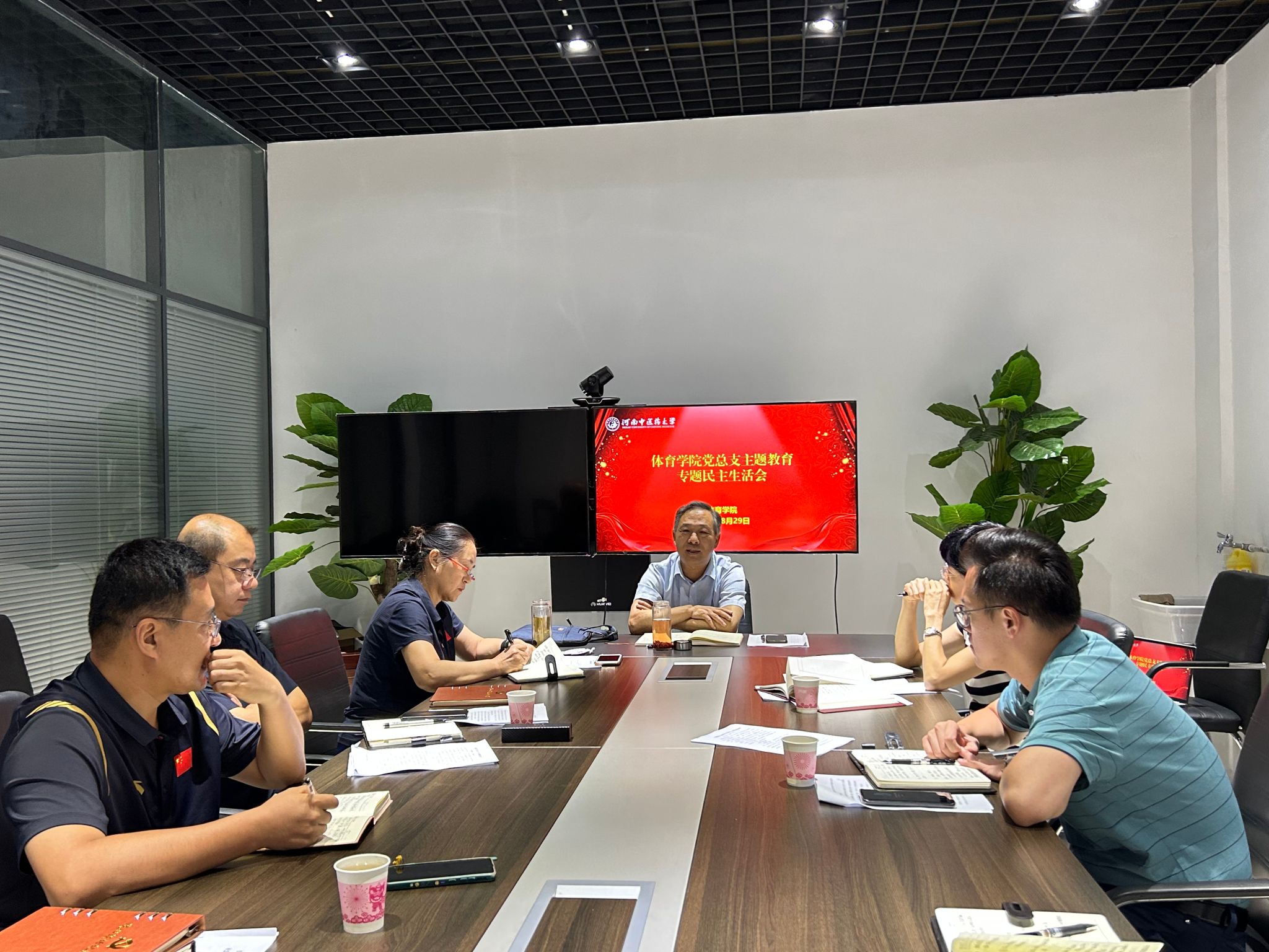 本网讯(文/张晨 图/管芫藜)为深入学习贯彻习近平新时代中国特色社会主义思想和党的二十大精神,持续推动主题教育走深走实,8月29日,体育学院召开主题教育专题民主生活会,查找不足,剖析原因,开展批评和自我批评。校党委委员、副校长徐江雁现场督导并讲话,全体领导班子成员参加会议。会议由体育学院党总支副书记王楠斐主持。