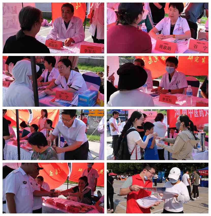 秋风送爽,丹桂飘香。2023年9月16日,在郑州市郑东新区如意湖文化广场,三附院党委副书记张政带领医院多位专家参加2023年“服务百姓健康行动”全国大型义诊活动周启动仪式。医疗专家现场为群众开出处方,提供用药指导,赠送中秋香囊、刮痧板、《健康素养66条》等。在升龙广场和联通信息广场,三附院组织医疗、药学、护理等专家,开展义诊服务,普及医学健康知识和中医特色疗法,并为现场群众提供了国医大师张磊推荐的养阴清肺茶饮。