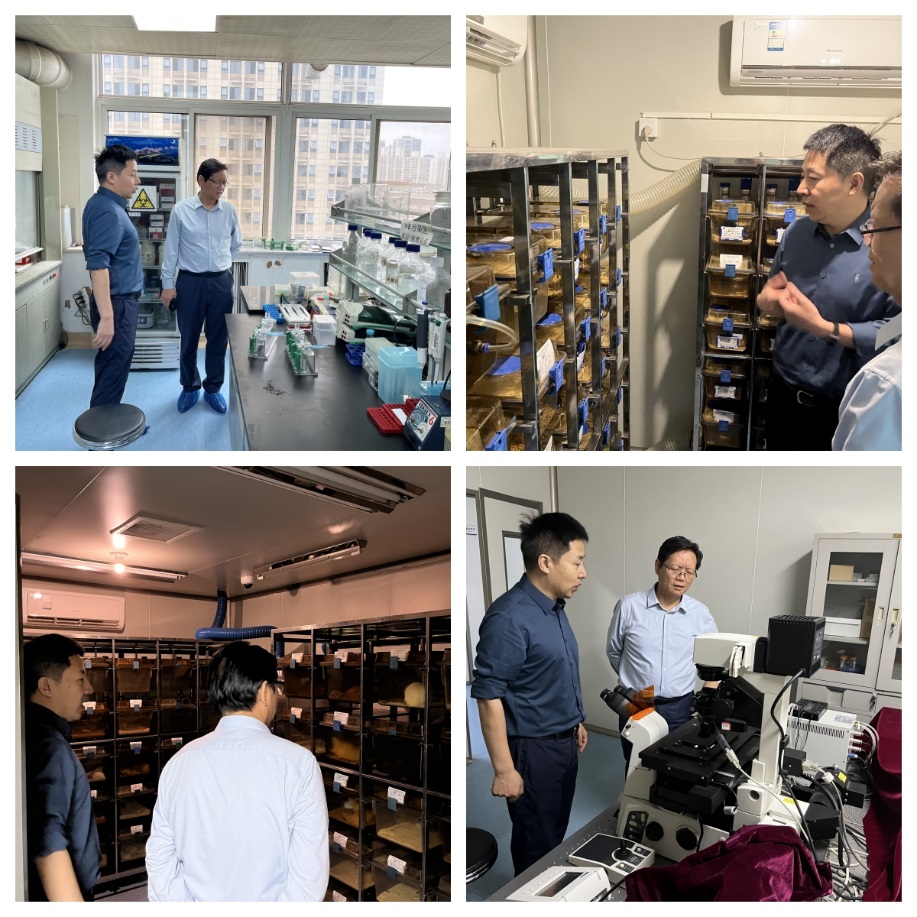 陈相新依次来到实验室细胞成像技术平台、细胞生物学平台、分子生物学平台、病理技术平台、动物实验平台、分子诊断平台,详细了解每个平台的功能应用。随后来到动物实验中心,了解动物中心的设备运行情况、实验动物容纳量、实验动物种属、动物设施的使用率和周转率、关键实验技术等。重点了解可以服务于医院科研发展需要的关键仪器及成熟的实验技术。