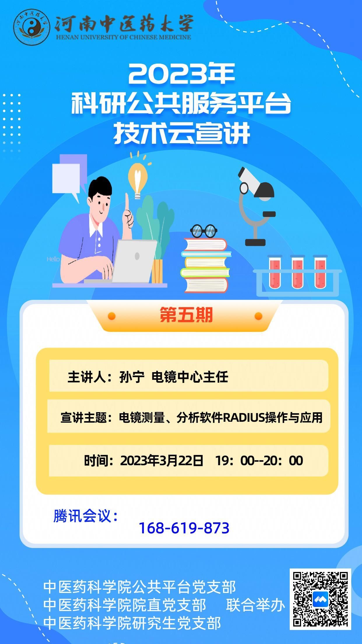 由学校中医药科学院举办的2023年科研公共服务平台技术云宣讲第五期将以腾讯会议形式开展。