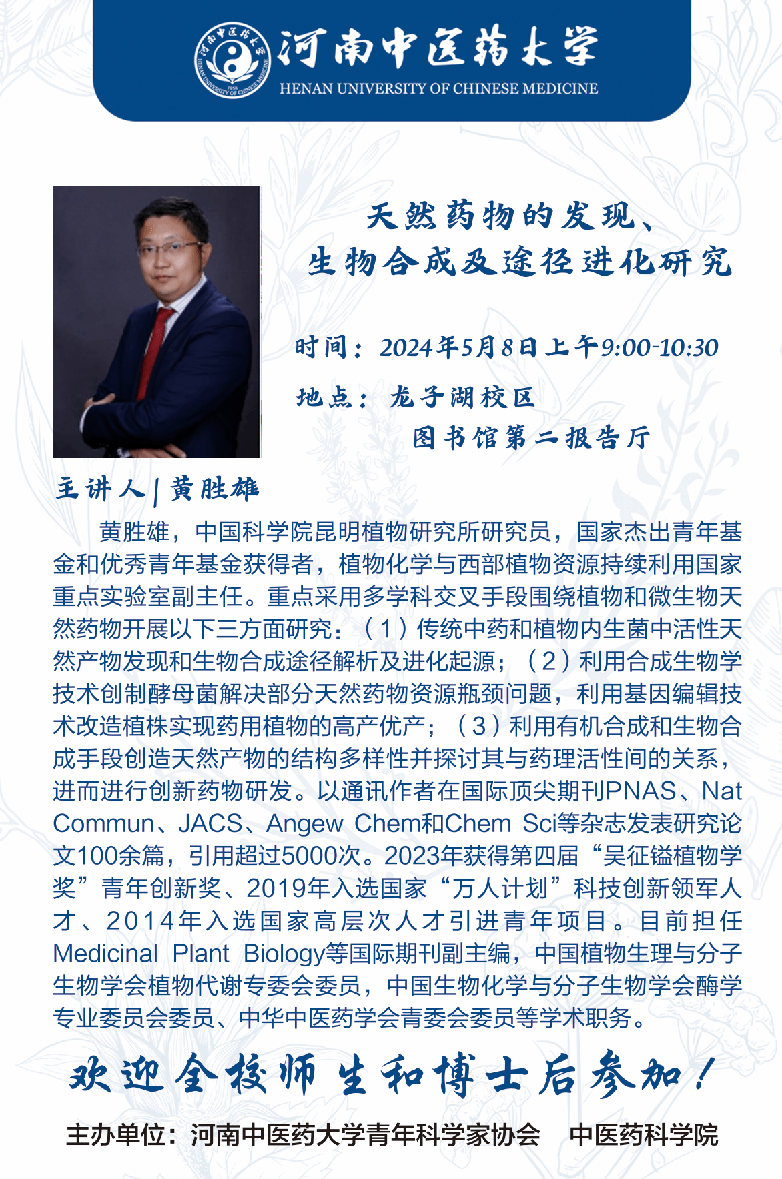 天然药物的发现、生物合成及途径进化研究