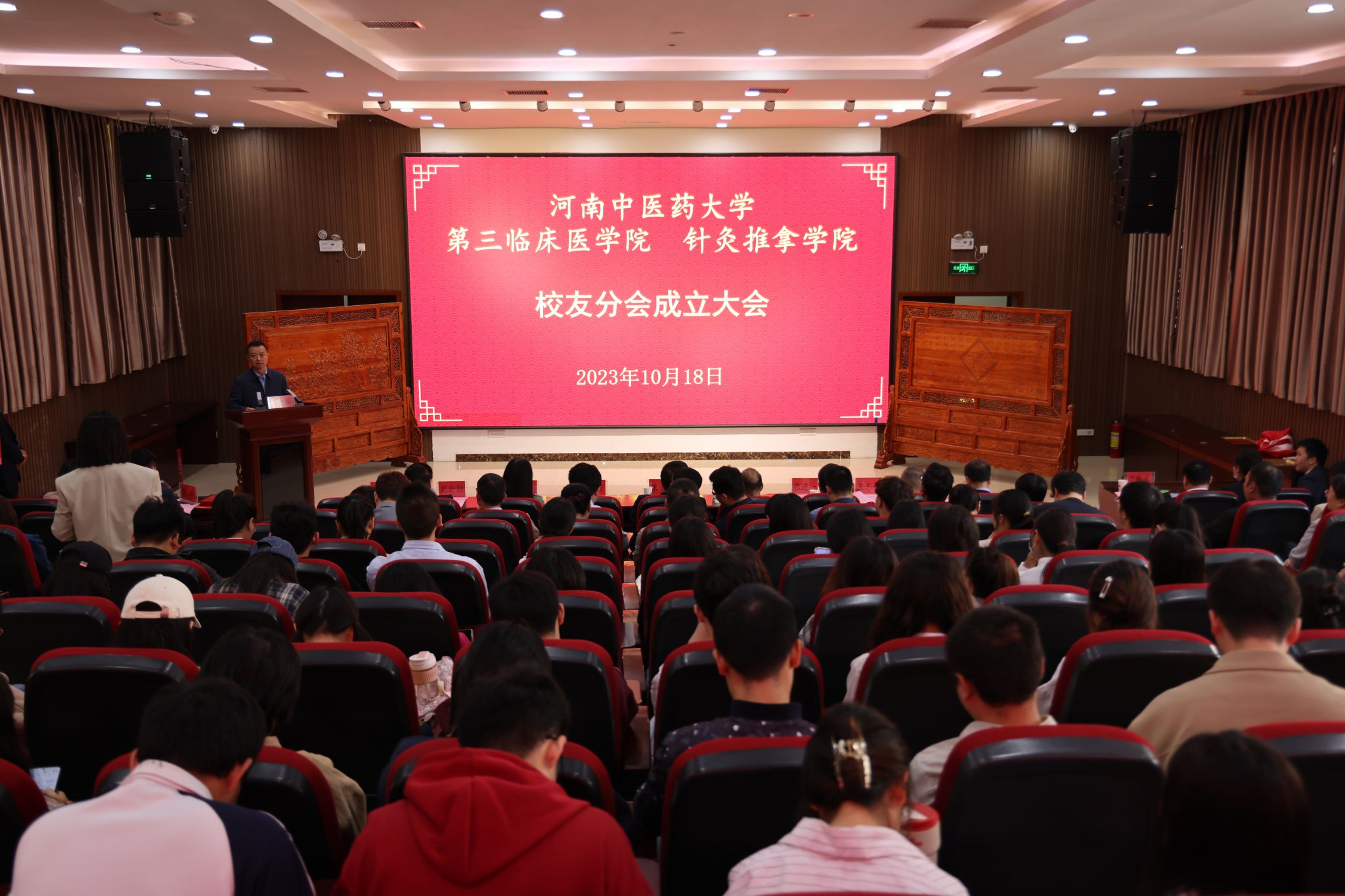 本网讯(文/田雨 图/于诗航)为进一步加强校友工作,凝心聚力,促进校友与母校共同发展、同向同行,经学校校友办批准,2023年10月18日,第三临床医学院、针灸推拿学院校友分会成立大会在医院学术中心召开。校党委副书记、工会主席张小平应邀出席会议。第三临床医学院、针灸推拿学院全体领导班子、教师代表、校友代表齐聚一堂,共同见证此次校友分会的成立,会议由副院长胡斌主持。