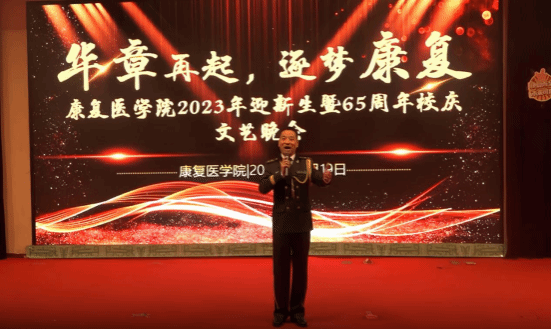 晚会以“华章再起,逐梦康复”为主题,围绕迎新生暨65周年校庆,在朗诵《青春中国》拉开序幕。神秘嘉宾、青年军旅男高音歌唱家方建明老师应邀到场,演唱了《母亲》和《当那一天来临》曲目,点燃现场气氛;《花间酒》《洛阳旧事》古风舞蹈风姿绰约,尽显华夏之美;《愿爱无忧》《爱的回归线》等歌曲倾情演唱,歌声婉转悠扬;心理情景剧《我不是卷王》以校园生活为主题,引导大学生勤奋学习专业知识。由康复医学院青年教师参加的大合唱——《夜空中最亮的星》婉转动人,同学们齐声跟唱,表达了康复医学院师生乐观向上、热情似火的青春风采。