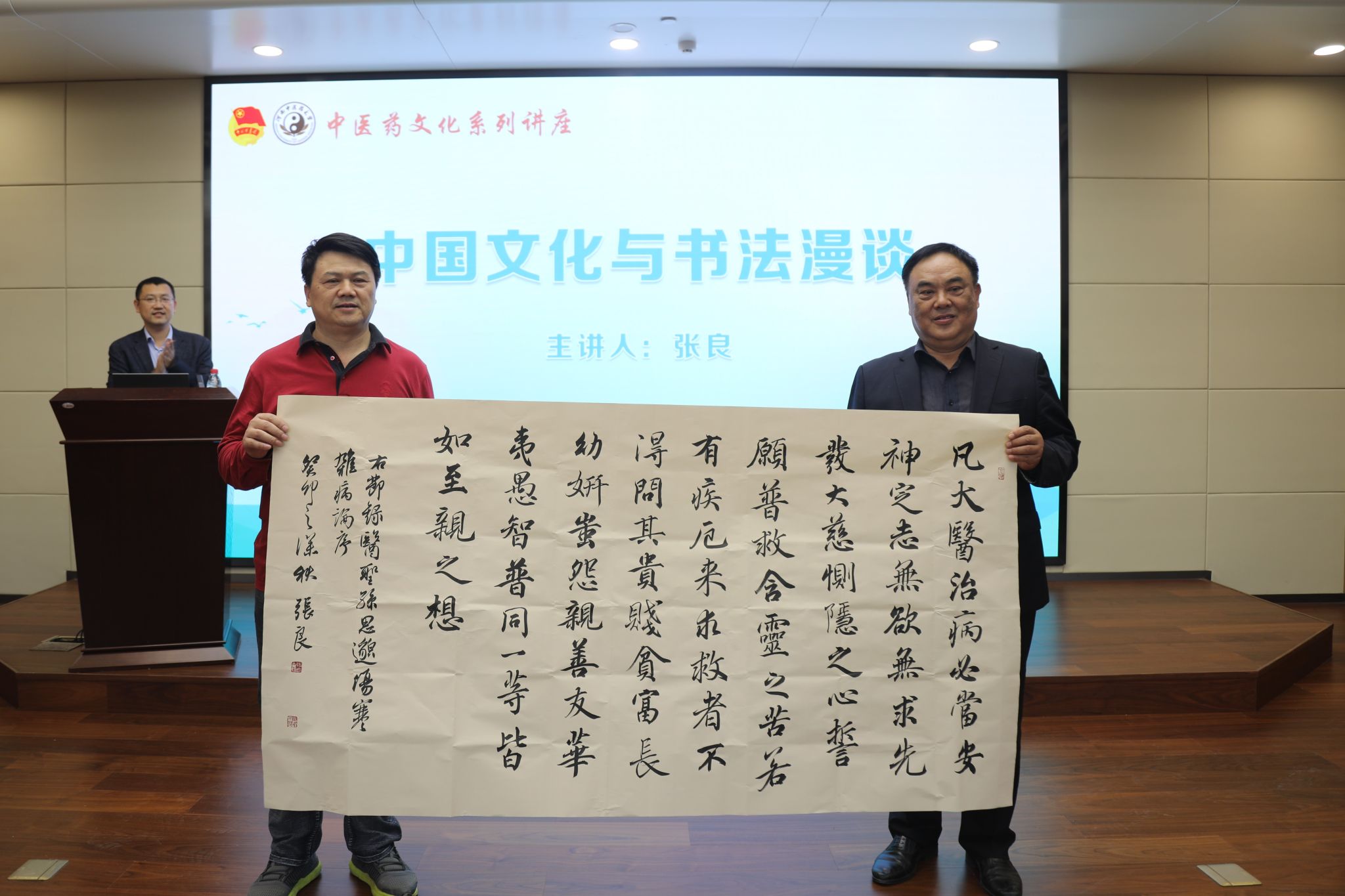 张良从文化与文化自信、中国文字起源与书法的产生发展、中医与书法的关系、各书体代表碑帖及书家简介与学习碑帖的选择、书法创作常用作品形式、书法鉴赏创作与收藏等六个方面,系统梳理了文字书写的发展历程,分析了中医药文化与书法中的相同之处,详细讲述了不同书法流派的特点及代表人物,介绍了鉴赏书法作品的方式和方法,结合个人经验为同学们学习书法提出了中肯的意见和建议。讲座中,张良强调中华优秀传统文化是书法的根基,书法与中医药文化有着密切的联系,当代青年要肩负起文化传承的历史使命,赓续文化血脉,坚定文化自信。
